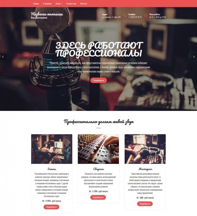 Готовые семплы аудиодорожек на продажу и бронировка зала для звукозаписи через заявку. Любой функционал сайта и его полное обслуживание, в зависимости от бюджета